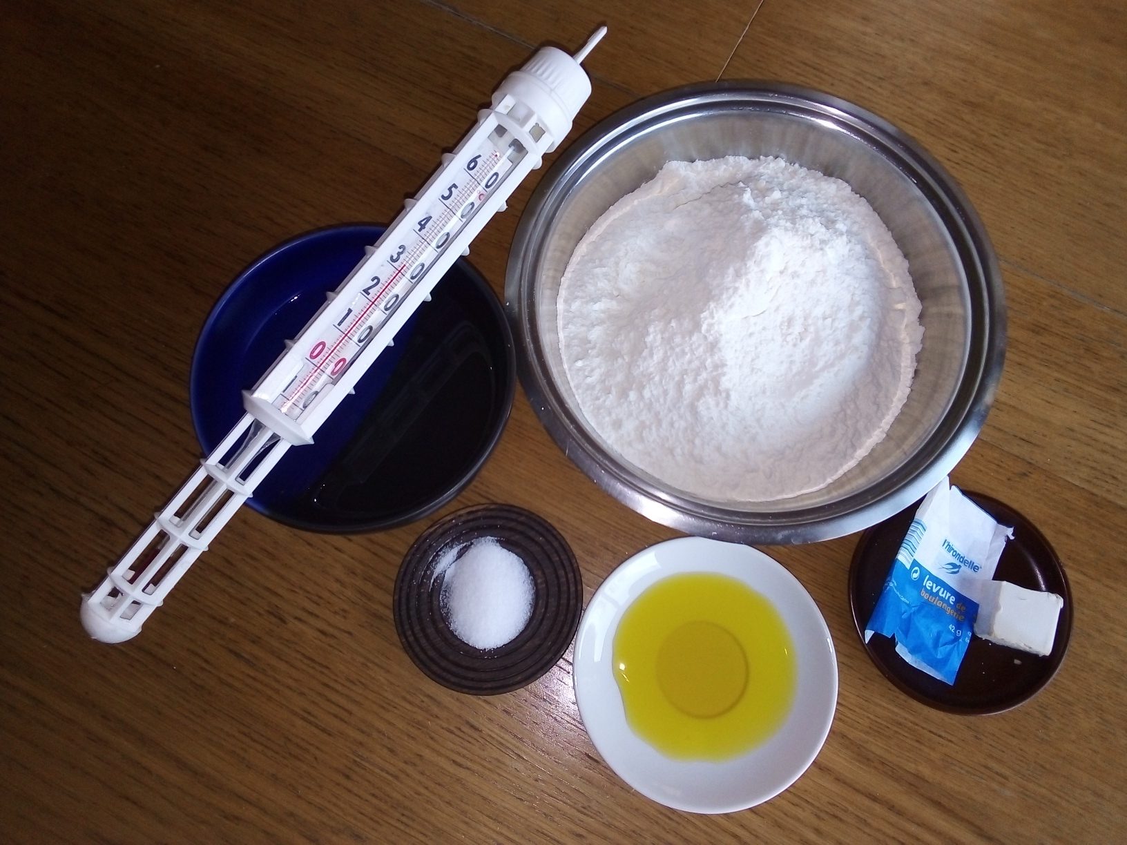 2 règles très importantes: la température de l'eau tiède ne doit pas dépasser plus de 35°, ne jamais mettre le sel au contact de la levure.