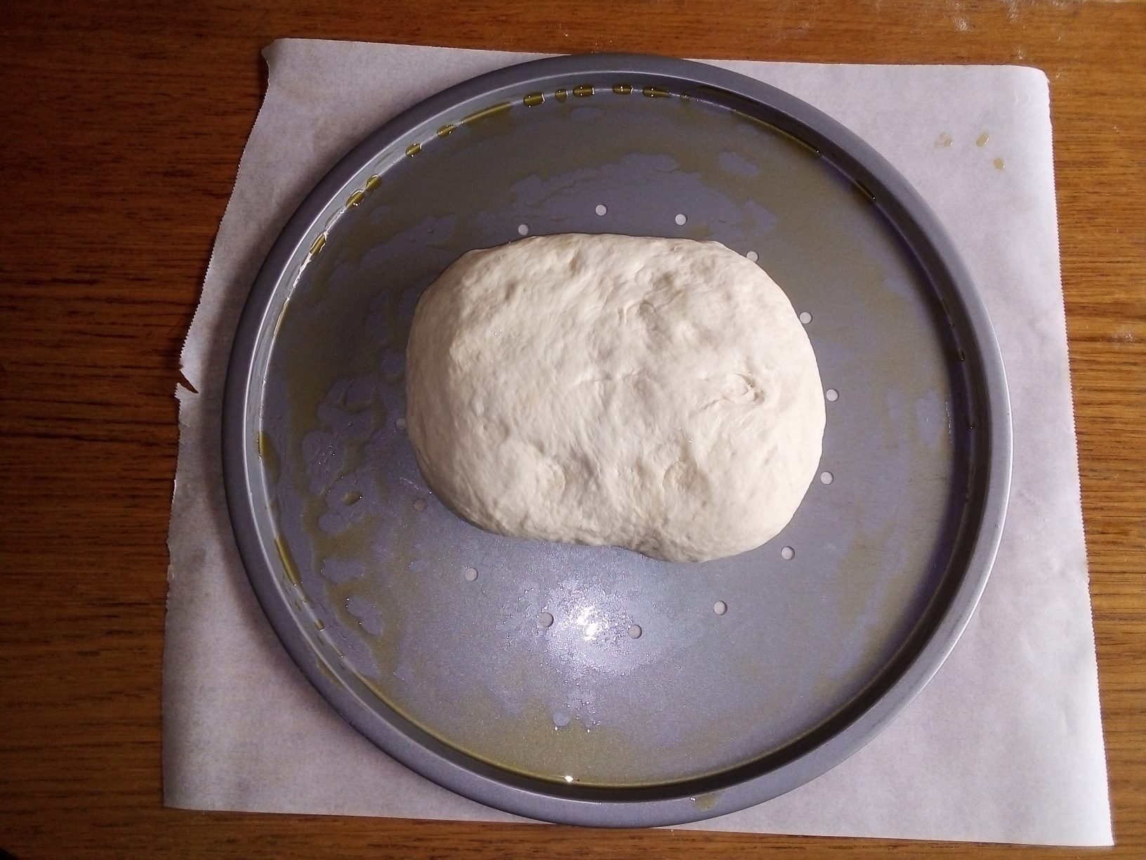 Prendre le moule à pizza (j'ai utilisé un moule spécial pizza à trous) bien l'huiler. Si vous utiliser du papier sulfurisé, n'hésiter pas à l'huiler.